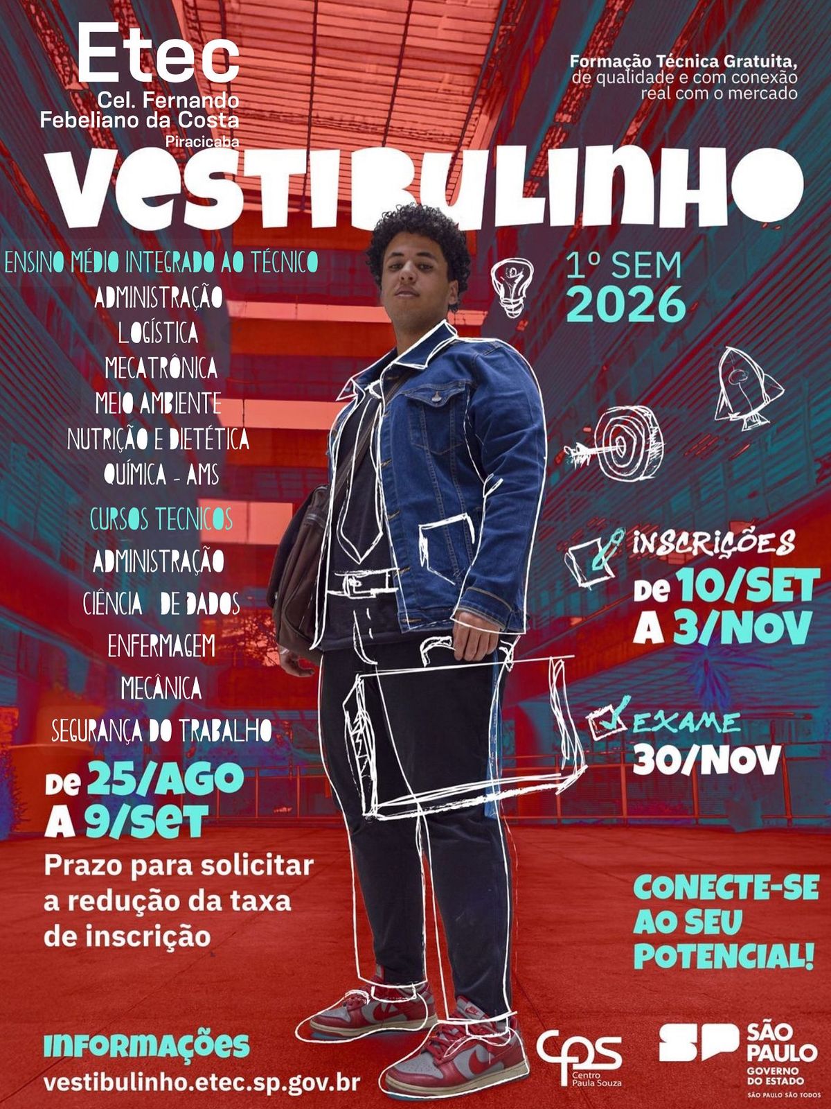 As inscrições para o Vestibulinho das Escolas Técnicas Estaduais (Etecs) acontecem duas vezes por ano.